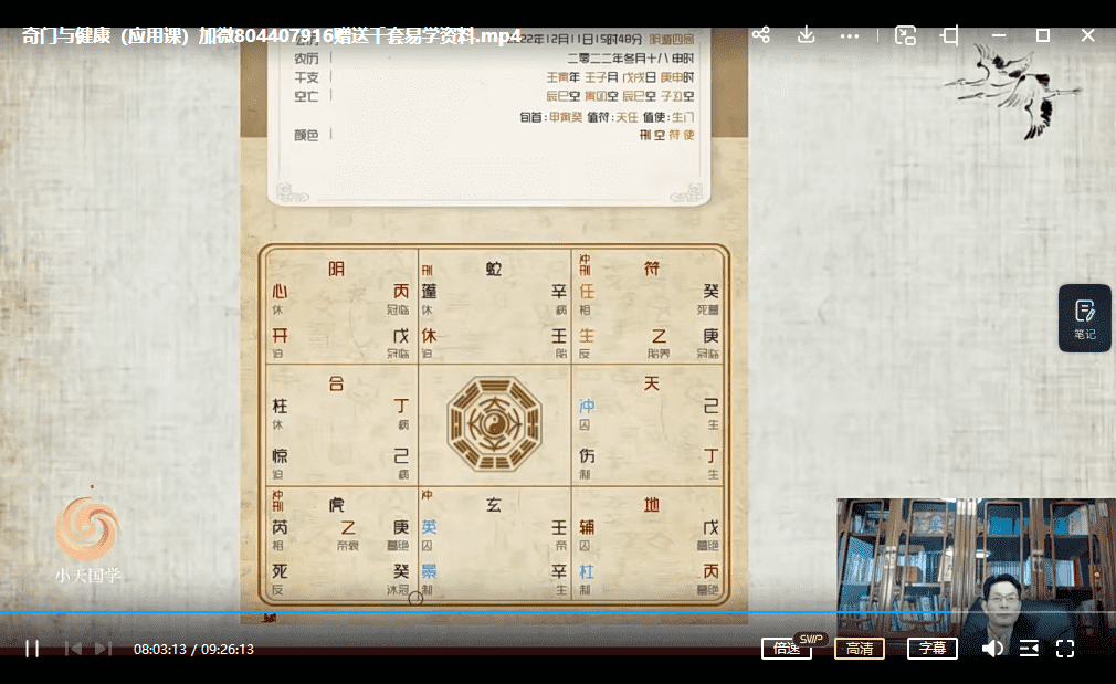 罗江普2022年12月奇门进阶系列课-奇门与健康 视频3集,共9个半小时,授课方式,网络直播