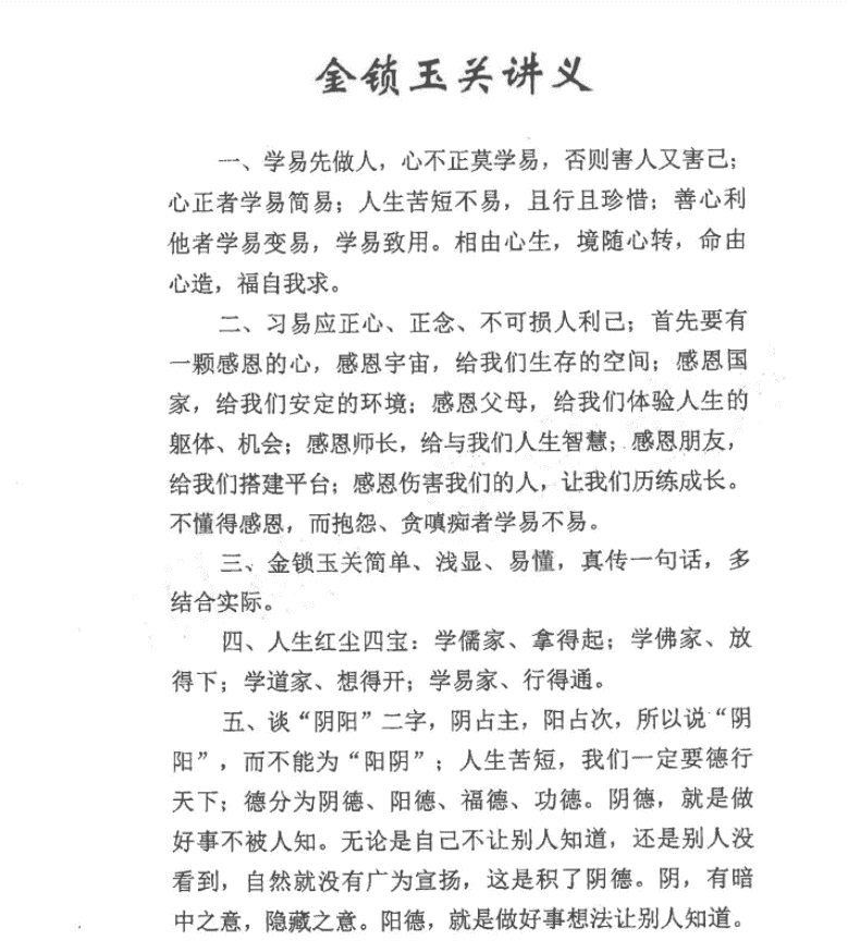 《金锁玉关讲义》汇集易经文化之精华,从专业的角度为我们判定房宅吉凶做出指引。此书倾注孙老师多年实战总结出的宝贵经验,图文解析相得益彰,希望此书能为有缘之人指点迷津,趋吉避凶,用中华民族博大精深的《易经》智慧灌溉我们的思想,指引我们的行为,促进社会主义精神文明建设,为实现中国梦推波助澜!