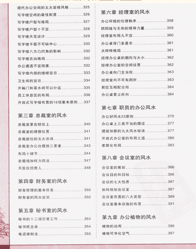 此外,本书还由外至内逐一详解办公室的风水布置玄机,无论是总裁室的财位选择、经理室的朝向,还是职员座位摆设、办公植物与照明本书都有详细论述,真正指导您营造好风水,求得好生意。