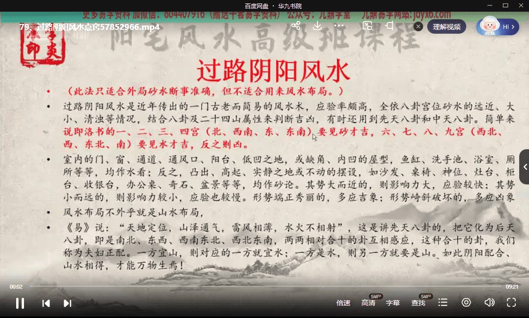 李炎辰阳宅风水高级班课程 视频80集,一门综合性的风水课程,所涉及的理论很多,包括,八宅,四象、玄空飞星、辅星水法、金锁玉关、三元纳气、择日等均有讲解