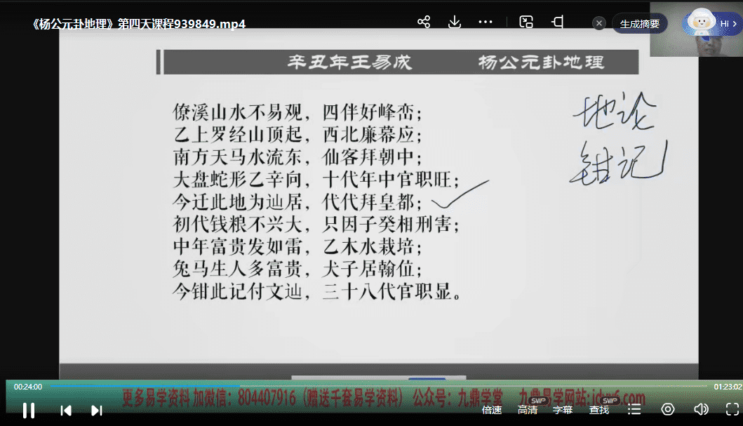 王易成2022年杨公元卦风水课程15集视频,刘国胜老师这个体系的杨公元卦风水课程。杨公元卦地理,是形峦、理气、造葬法、择吉、配命、重缘六者兼备,并有机结合在一起的一门完整地理术,在形峦上讲究形,势、情、方位的配合,讲究山水的雌雄配合,认为孤阳不长,孤阴不生,强调龙水阴阳交媾。