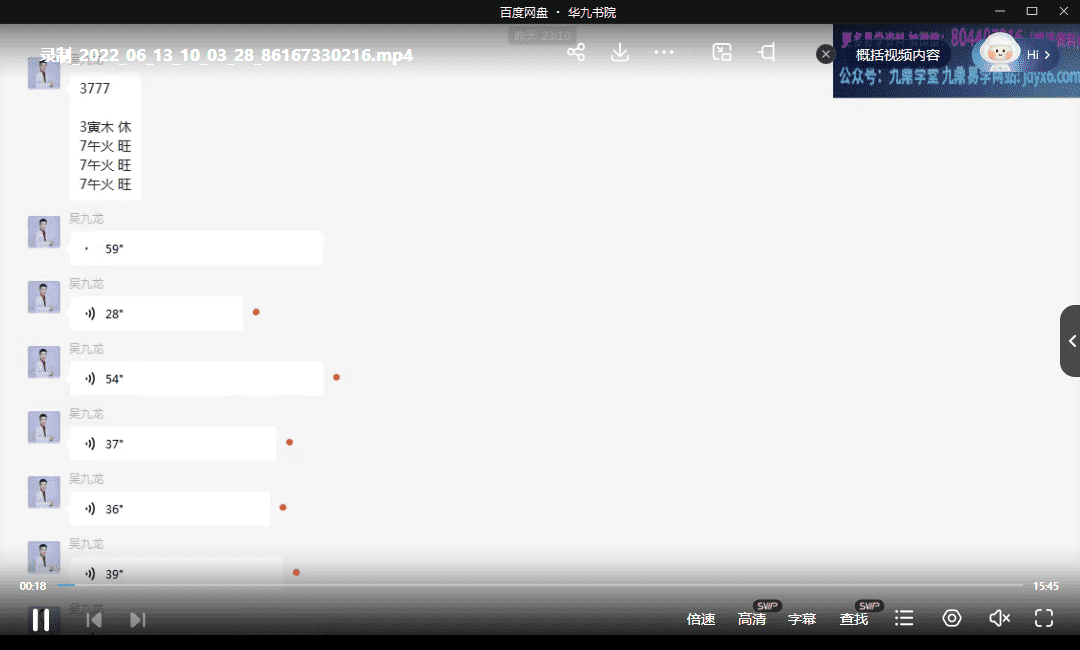 吴九龙《号码秒断》弟子技法班,授课其实是微信群的模式,采用语音+配图文档的形式,所以虽然是视频,其实还是录音+文档学习的模式