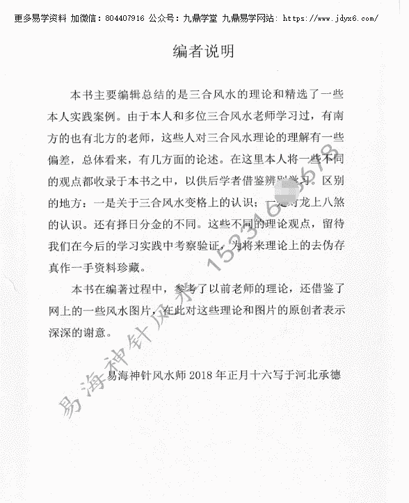 易海神针风水系列之《三合风水理论与案例精选》PDF 167页,之前网站还有易海神针老师的《雪心赋彩色图文解》。