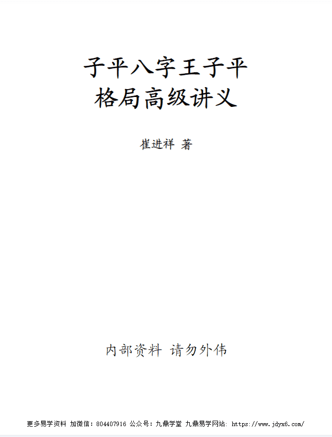 崔进祥2020高级班《子平八字王、子平格局高级讲义》233页pdf,崔进祥的名片就是风靡一时的君臣命理,是八字综合学习的产物。