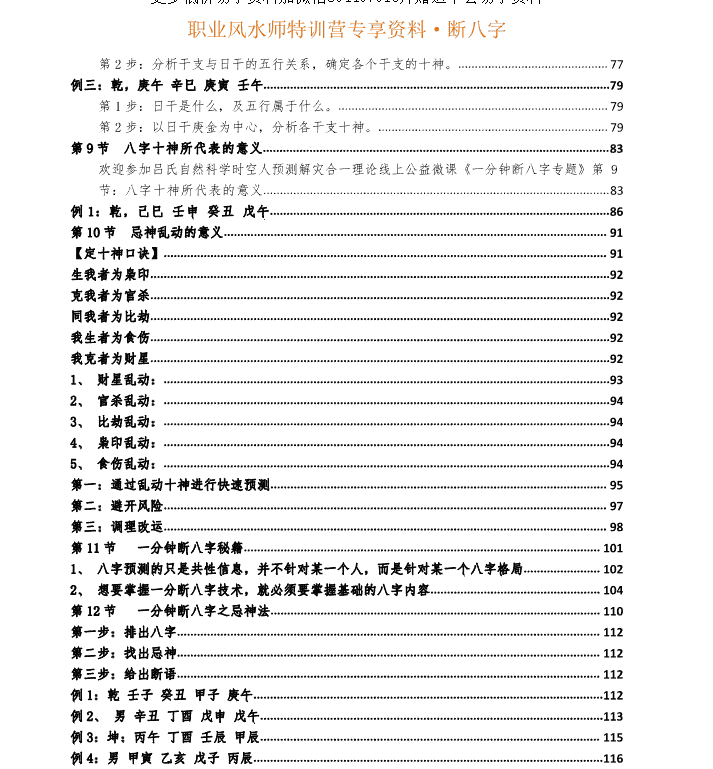 吕文艺《一分钟断八字专题20节》职业风水师特训营专享PDF195页