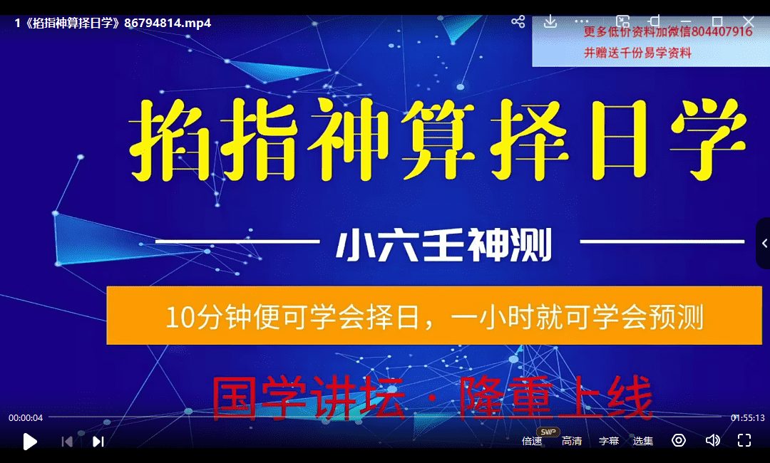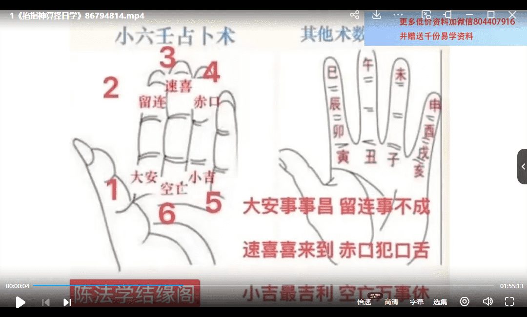 陈法学小六壬《掐指神算预测择日学》(择日学和预测学综合版) 总共2集,每一集两个小时左右,主打快速学会小六壬的主题