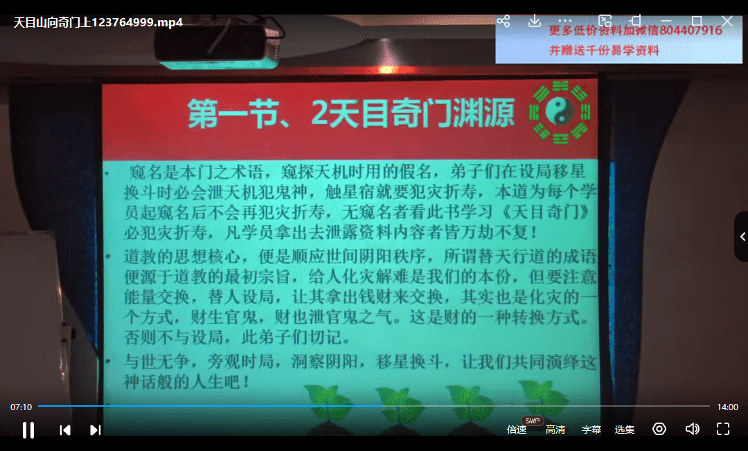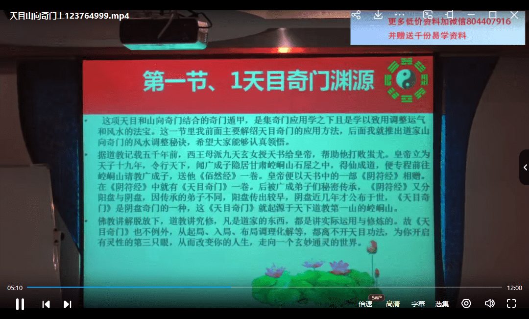 张一勺《天目山向奇门》20集高清视频,系统讲解山向奇门,并且有各种助运,调理的讲解。