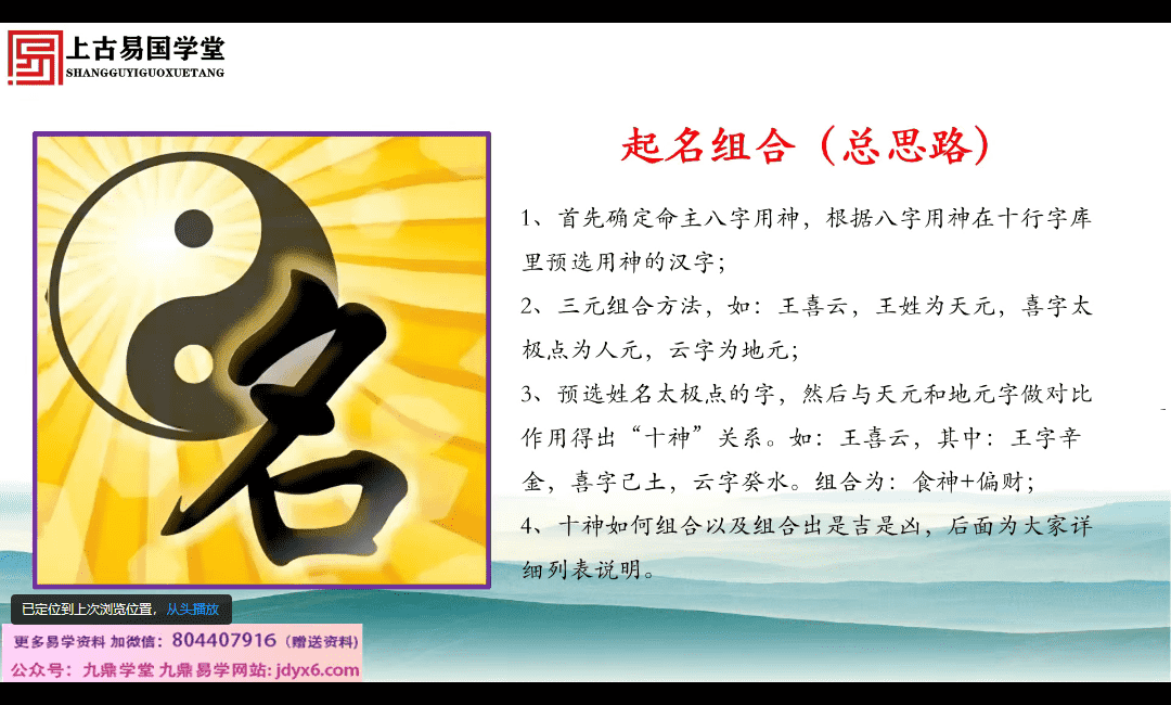 拂尘子天机姓名学 视频8集,虽然主要是天机姓名学,但还捎带生肖姓名学的知识点,八字用神做辅助,进行具体的应用