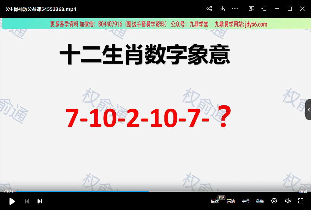 权俞通生肖神数公益课专栏 5集高清视频(九鼎易学)