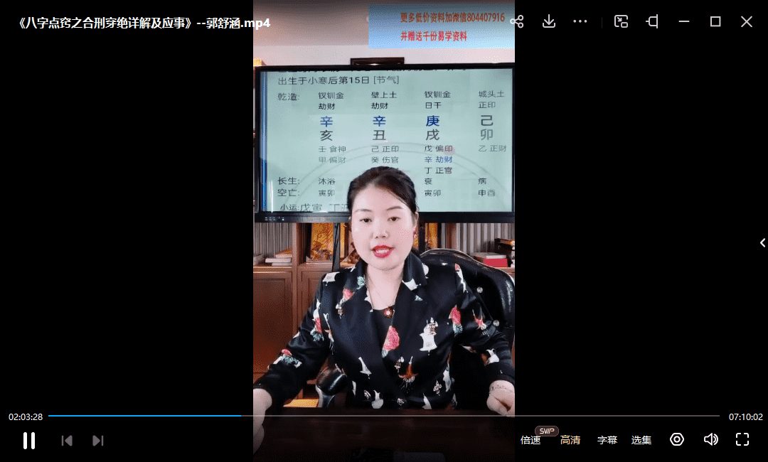 郭舒涵《八字点窍之合刑穿绝详解及应事》一个视频7小时(九鼎易学)