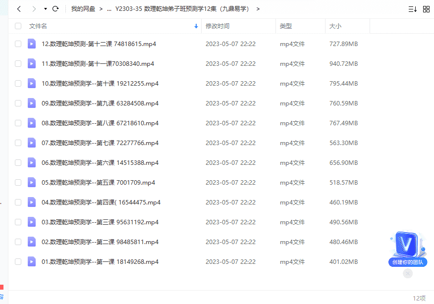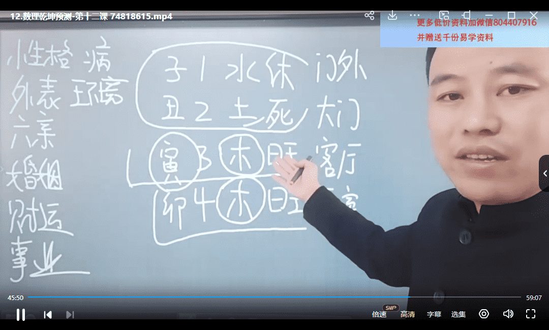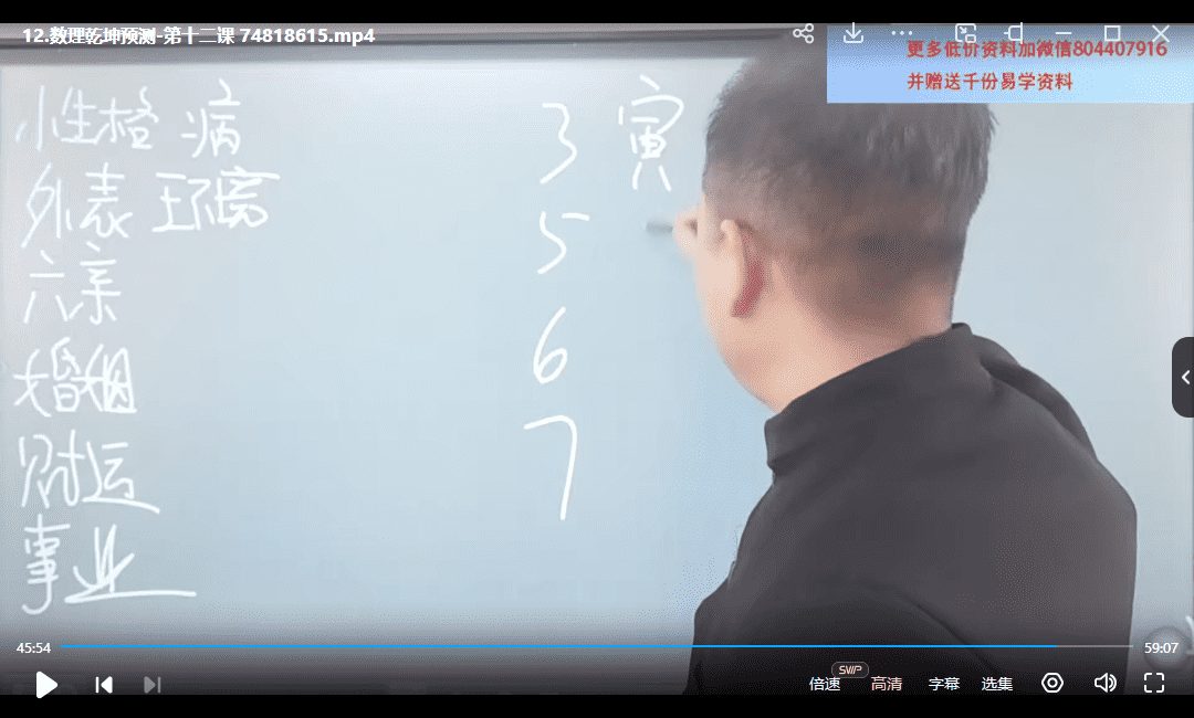 数理乾坤弟子班预测学12集高清视频(九鼎易学) 一个视频大概1个小时左右,老师讲解的很详细