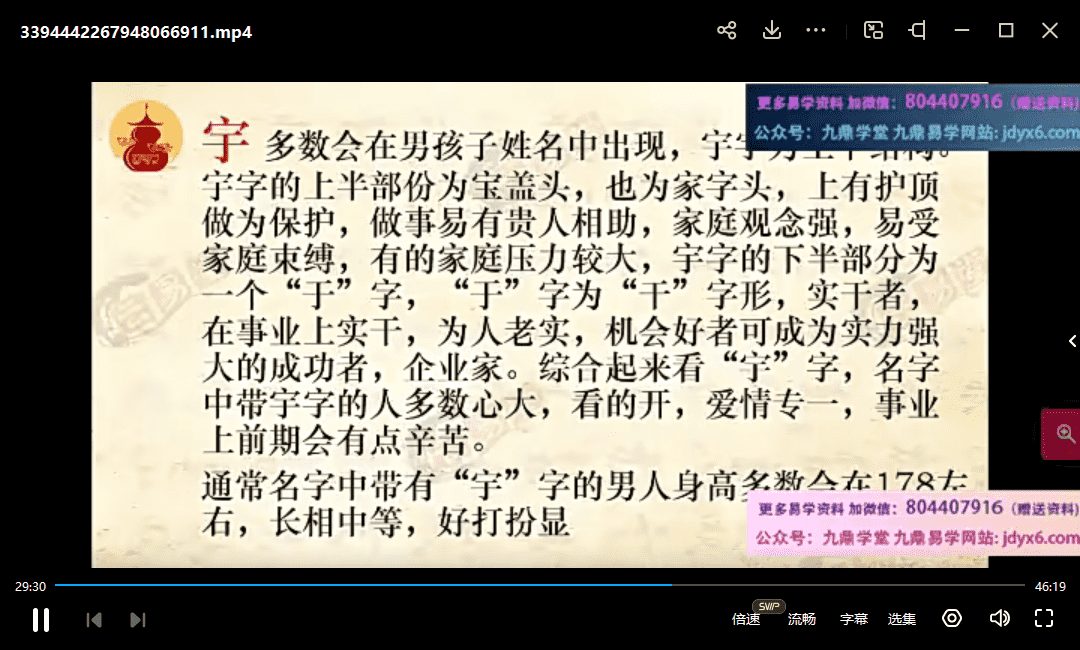 郭舒涵《姓名学常见忌用字解析》1集高清视频(九鼎易学)