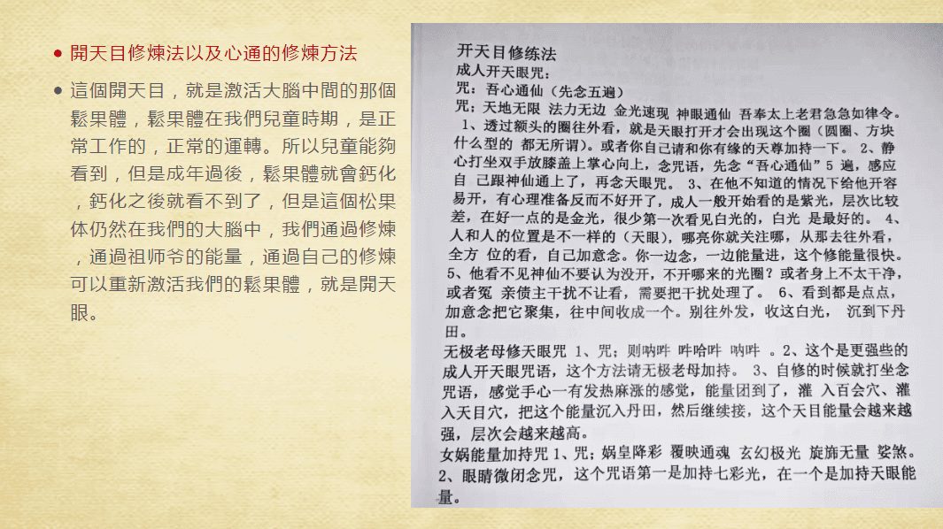 ● 1. 开天眼、开心通,修练开天眼的功法和咒语(此术在外专门传授班上万元。)