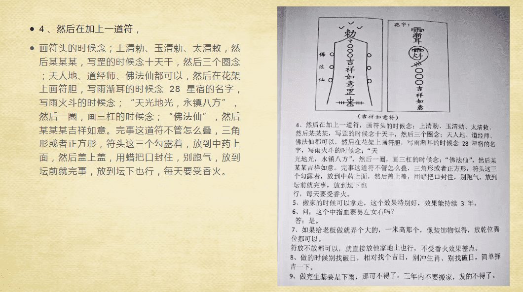 ● 画符有禁忌,不能吃牛肉,狗肉,大雁,乌鱼,蛇,龟,狐狸,猴子等灵性动物