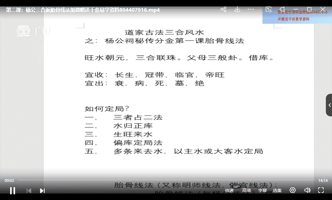 杨公三合派胎骨分金线法原版 5集高清视频,道家古法三合风水,又成为明师线法,催官线法。