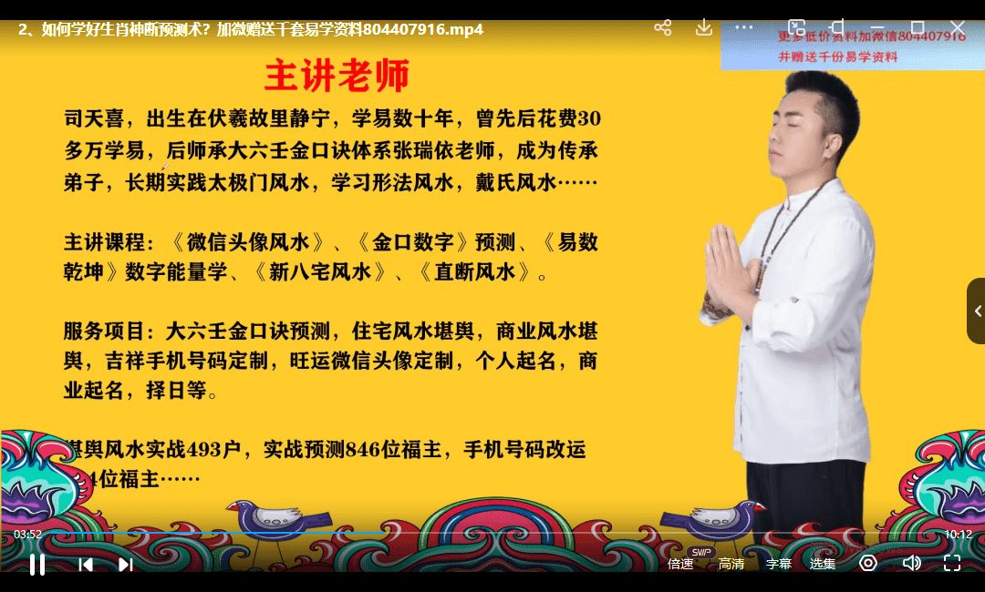 司天喜 生肖神断精华班 17集高清视频(九鼎易学)
