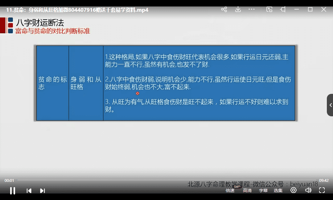 讲解详细,穷富命格的标志和案例分析,并分开对上班族和自由职业者的财运分析,并多集讲解如何避免破财,如何趋旺财运等。
