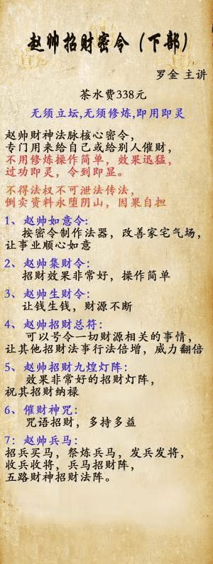 无须立坛,无须修炼,即用即灵赵帅财神法脉核心密令,