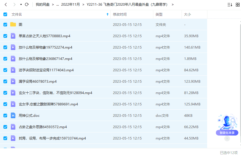 飞鱼奇门最新2020年8月外盘、单宫断、催财,设局布局、玄女诀等课程视频10集+资料+图片。