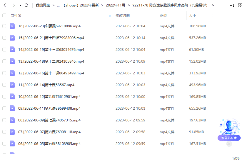 陈安逸依盈数字风水高阶16集高清视频(九鼎易学),每一集将近一个小时左右,内容丰富,很多实战案例教学