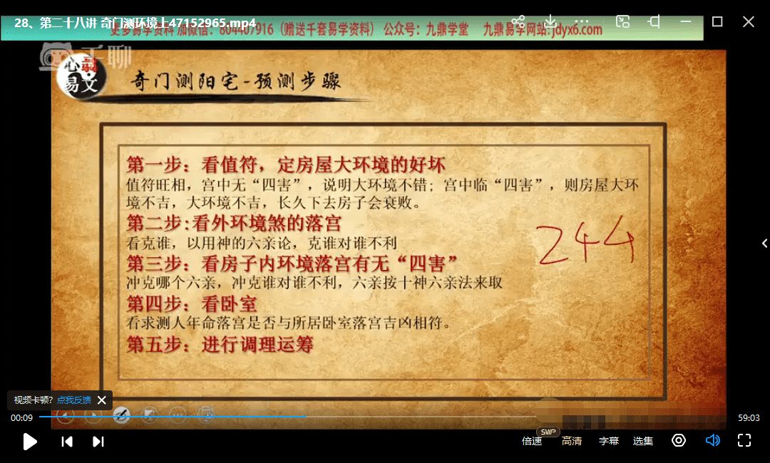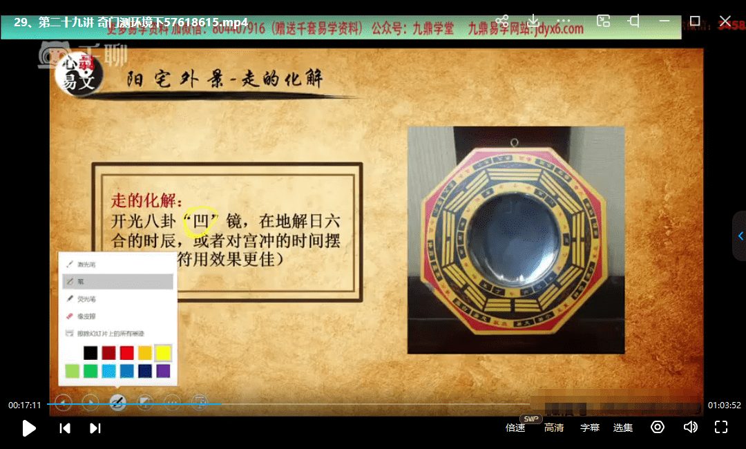 心翳道家奇门视频课程 32集高清视频,从基础到各项预测均有讲解。