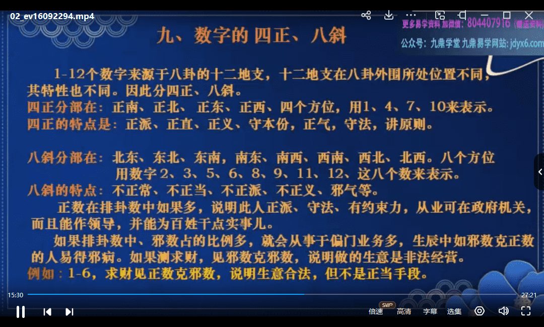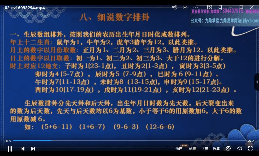 周易大学明禅数字命理视频13集高清视频(九鼎易学)虽然没有目录,但是讲的很细,质量高