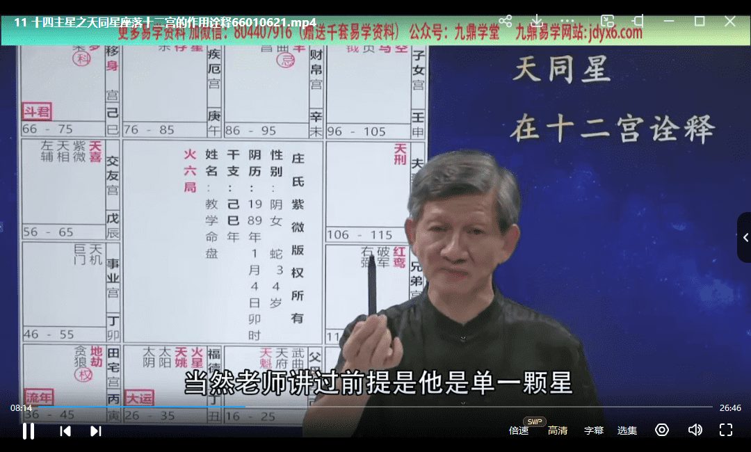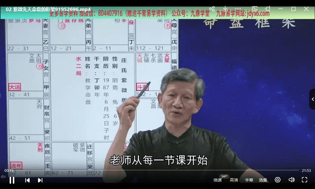 国学摇篮 庄氏庄明正 紫微斗数实战训练营视频52集,视频带字幕讲解,非常详细
