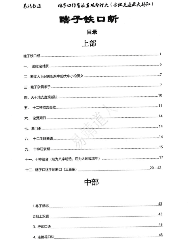 易靖道人诸明子 盲派真功夫 铁口金不换 秘传瞎子铁口 100页PDF