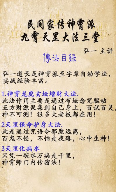 弘一老师民间家传神霄派九霄天罡大法三堂 三个法 每个一页,电子书5页