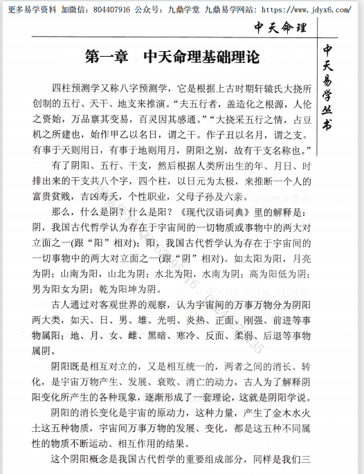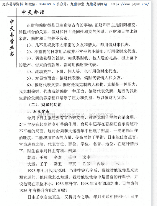 老师巧妙地把中天易之理论应用到八字命理中,利用中天之数把八字命理数码化,提高了八字命理的准确性,创造了一套完整的独有的中天命理学理论体系。