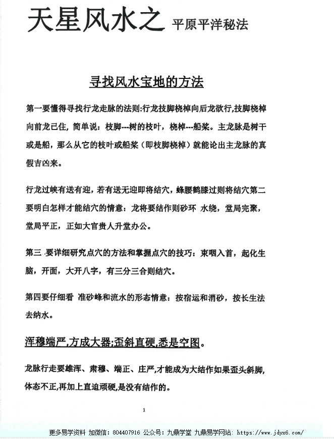 《天星平原风水阴阳宅内部资料》110页电子书(九鼎易学)