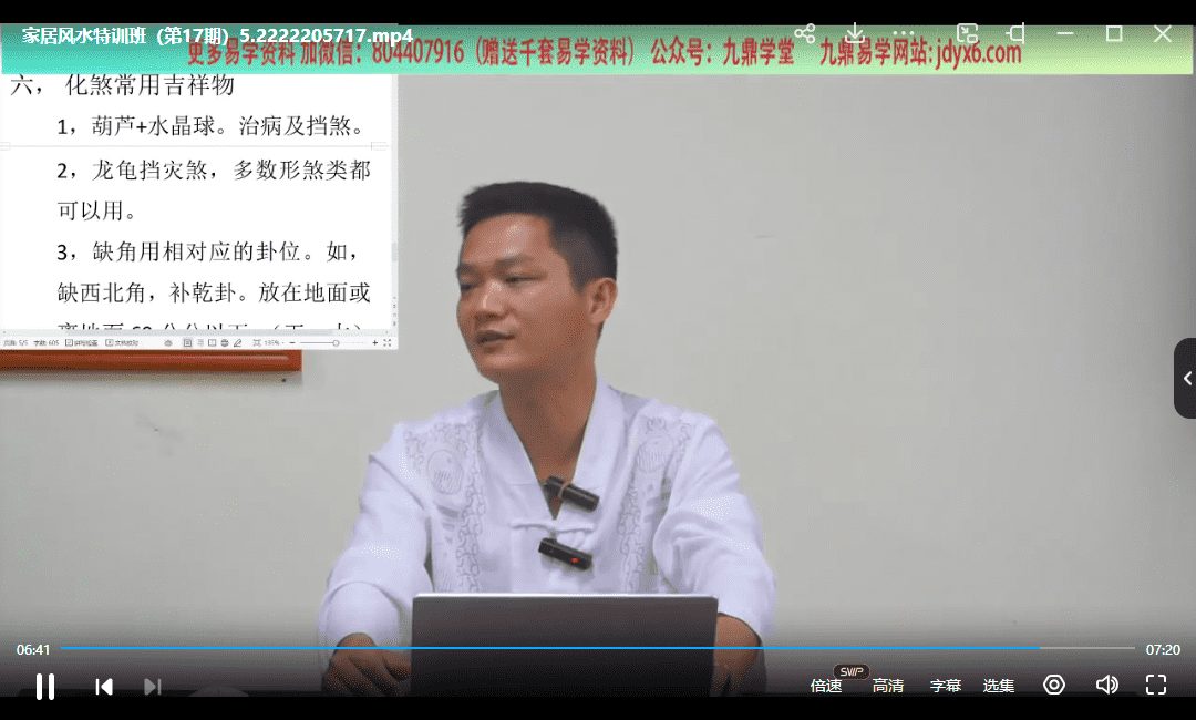 沐菁华家居风水特训班 4集高清视频 一集视频6个小时 总共24小时左右,沐道长讲解,大量家居风水实用内容。