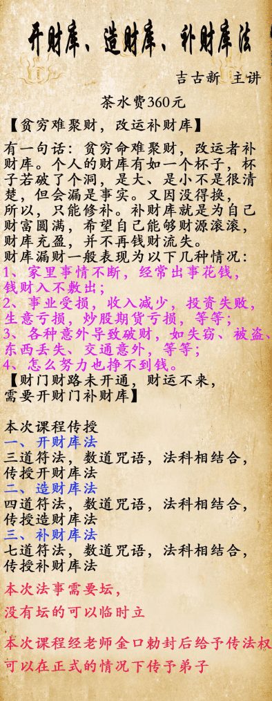本课程由阳翥派第九代掌教吉古新老师主讲。