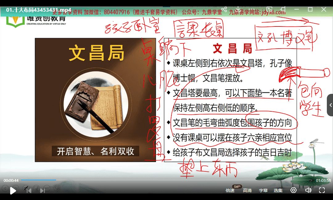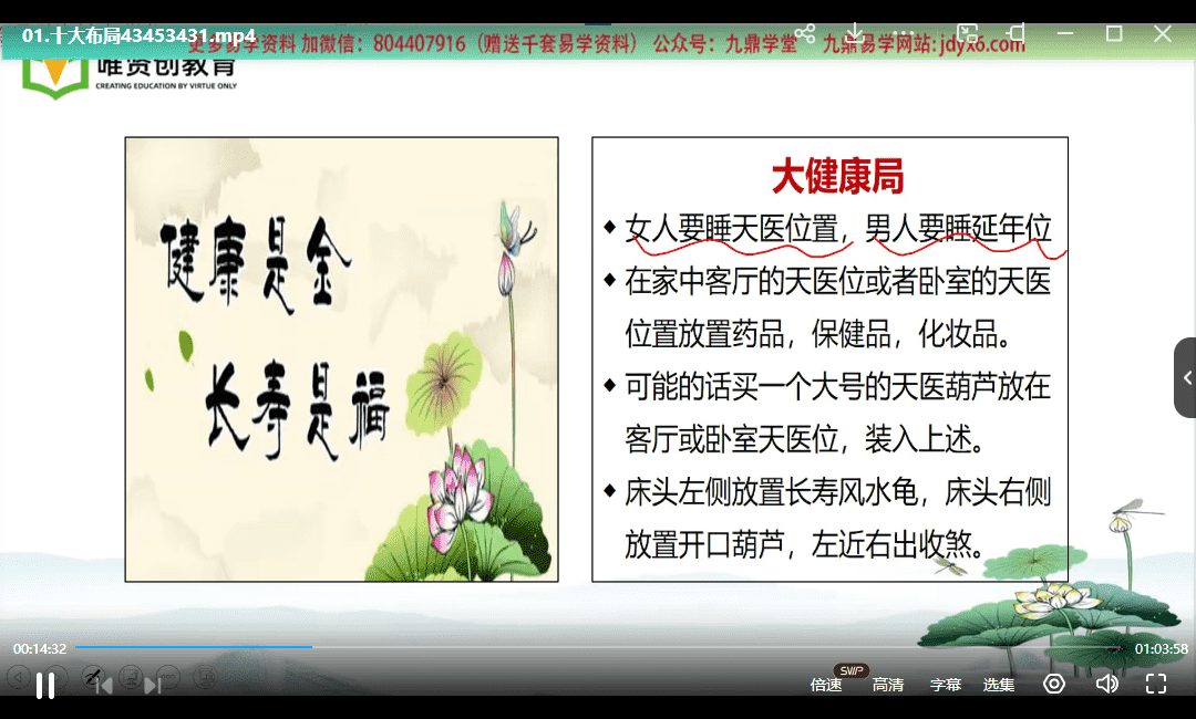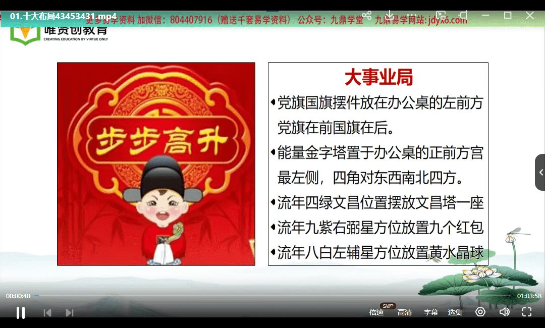 弘易 十大布局:事业局.布财库.斩烂桃花.催桃花.文昌局.大健康局.卖房局.化解官司口舌.搬家旺宅局.天时催财局(九鼎易学) 总1集视频,1个小时时长