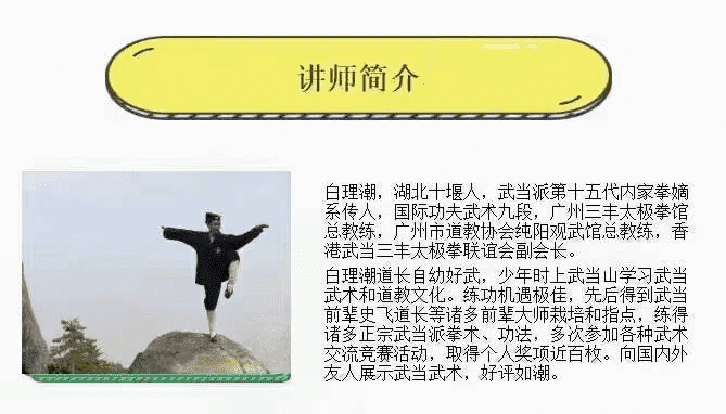 白理潮,湖北十堰人,武当派第十五代内家拳嫡系传人,国际功夫武术九段,广州三丰太极拳馆总教练,广州市道教协会纯阳观武馆总教练,否港武当三丰太极拳联谊会副会长。