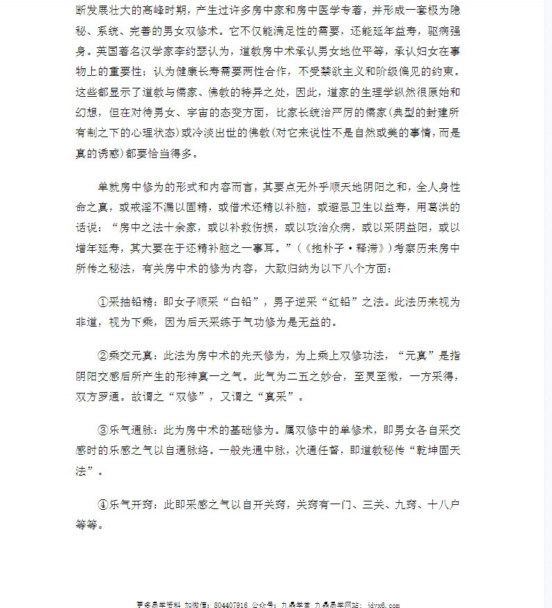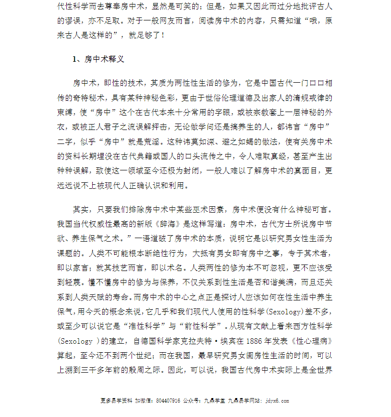 养生保气之术。它是以研究男女性生活为课题的。懂不懂房中的修为与保养,不仅关系到性生活是否和谐美满,而且还关系到人类天赋的寿命。