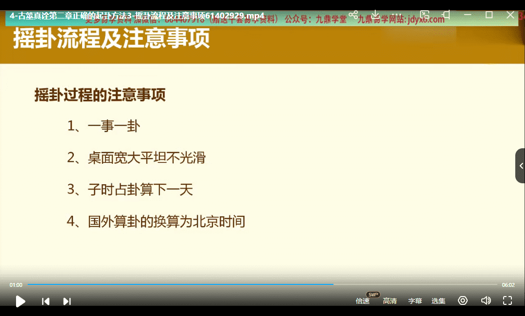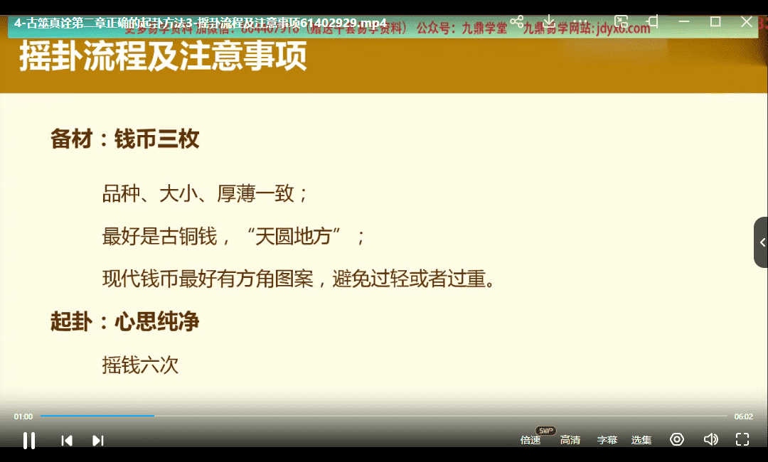 | ├──4-古筮真诠第二章正确的起卦方法3-摇卦流程及注意事项.mp4 9.63M