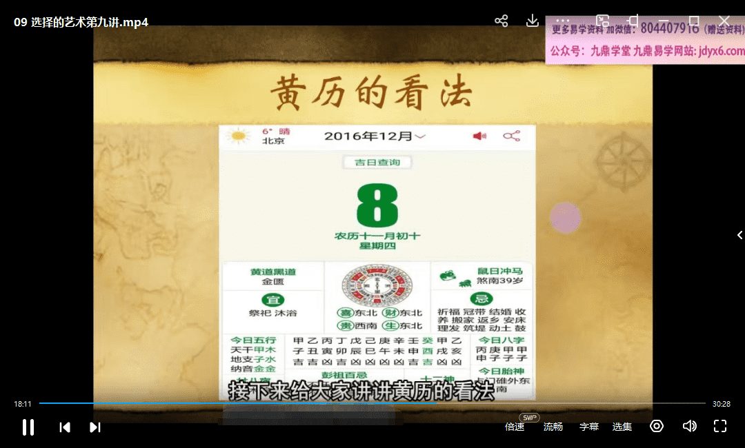彭心融择吉课程-选择的艺术10课视频,带字幕讲解,教你如何择日,十个课时学会如何择吉。
