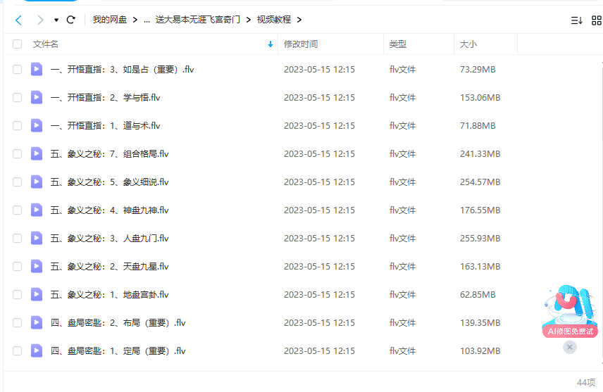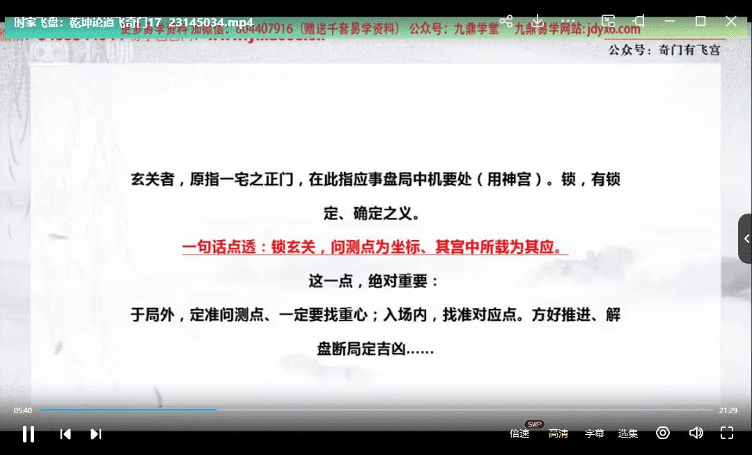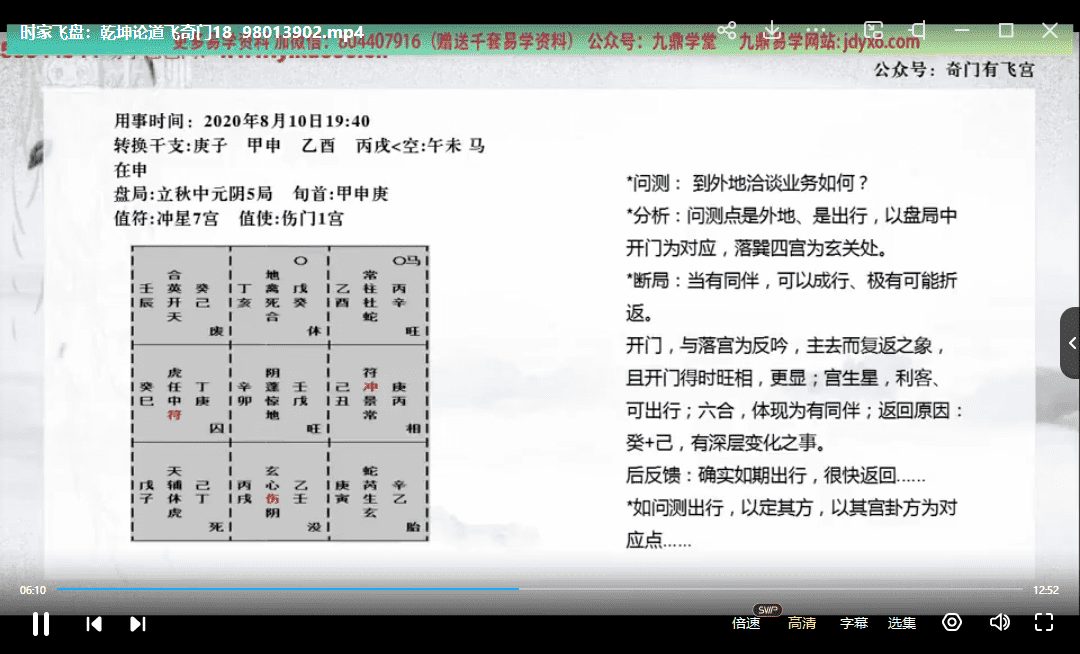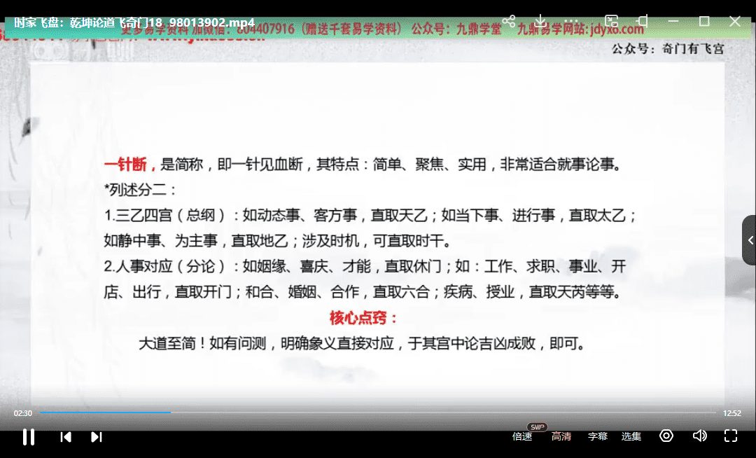 包括大易本无涯《奇门飞宫精讲专辑》奇门遁甲视频图文教程,视频44集,加文字资料。