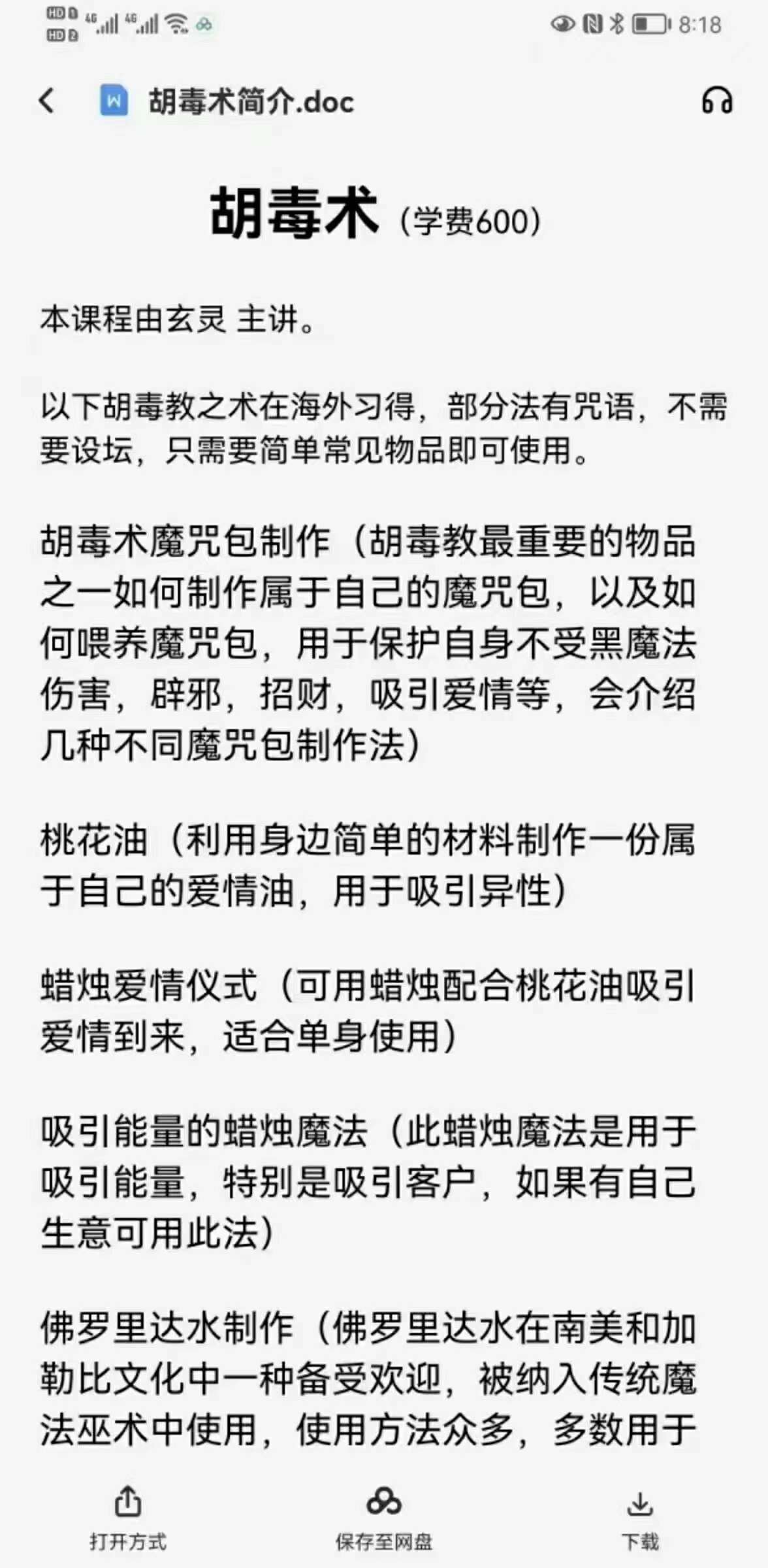 以下胡毒教之术在海外习得,部分法有咒语,不需要设坛,只需要简单常见物品即可使用。