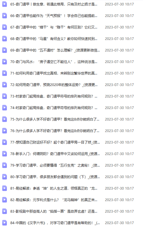 奇门遁甲罗江普老师的视频,奇门实战精彩案例视频84集 带字幕讲解。注意,这个视频不局限于奇门遁甲分析,也有其它民俗文化类的讲解,但奇门遁甲案例分析占多数。