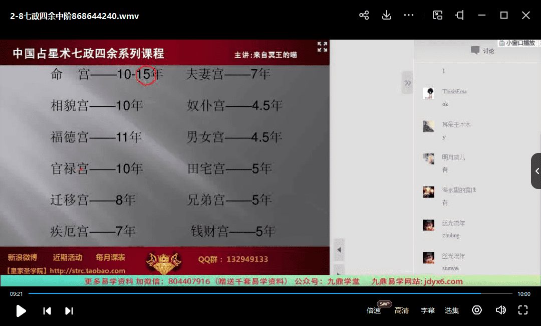 冥王的喵 七政四余(九鼎易学)视频清晰度一般