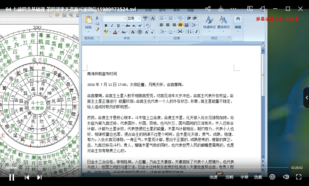 紫苏七政四余资源基础课程6个视频+录音6个+讲义6个,喜欢紫苏七政四余课程的不要错过!