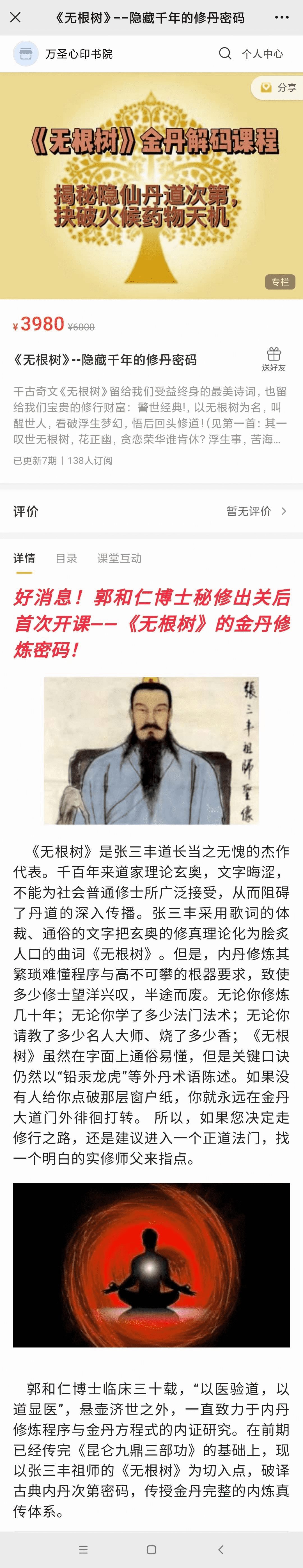 修秘炼典三个课程,包含:郭和仁士博秘修关出后首次开课的:1、《无根树》的丹金修炼密码;2、太上昆仑秘修部中功;3、太上仑昆经典高功秘授。 三课程网课