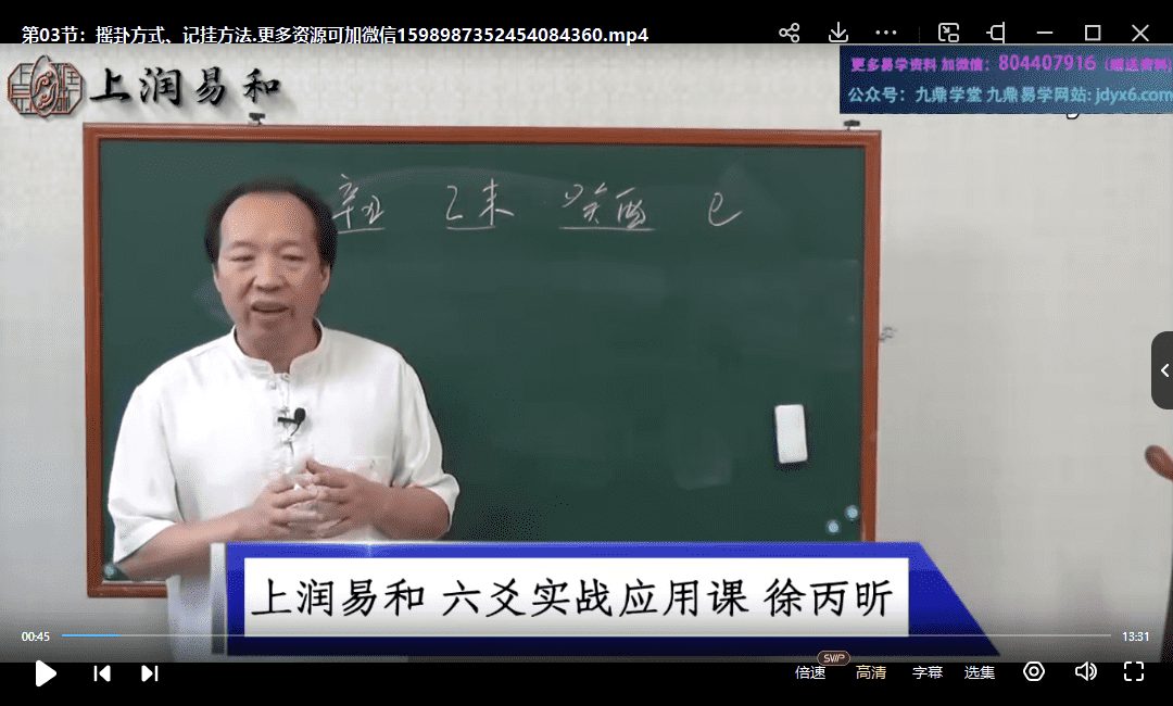 徐炳昕六爻纳甲筮法预测实用课程41集视频,从六爻的源流讲解,包含基础知识要点,任何讲解各种不同预测事项的用神选择和要注意的地方,可以说是一套完整的六爻课程。