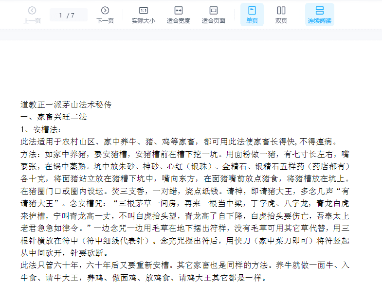 正一派茅山法术-茅山术书籍 道教正一派茅山法术秘传共7页PDF电子版