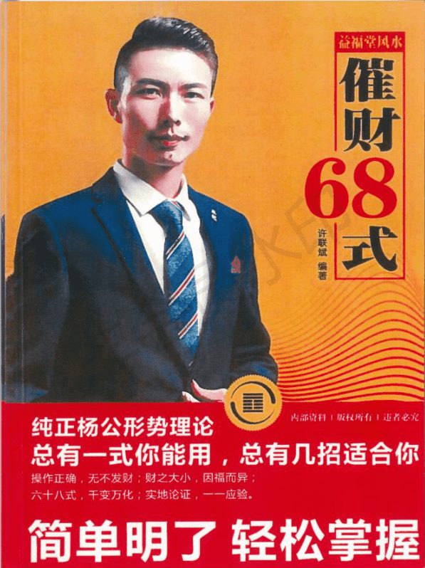 许联斌祖上五代传承风水,十二岁开始研读风水典籍,几乎走遍全国各地勘察名地,是实战派风水倡导者,以大量实践经验创造了催财68式,迅速催财、催贵、催桃花等实用理论,主张理论简明,提倡迅速学以致用,并在大量实践中做到行之有效。传说中的催财第一书,不懂其价值的可以百度一下,就知道有多少人在寻找这个书,理论上每个人都能从中有所收获财运,如果一个点同时符合五六式那就容易发大财,只要符合一个式的就会有财了。