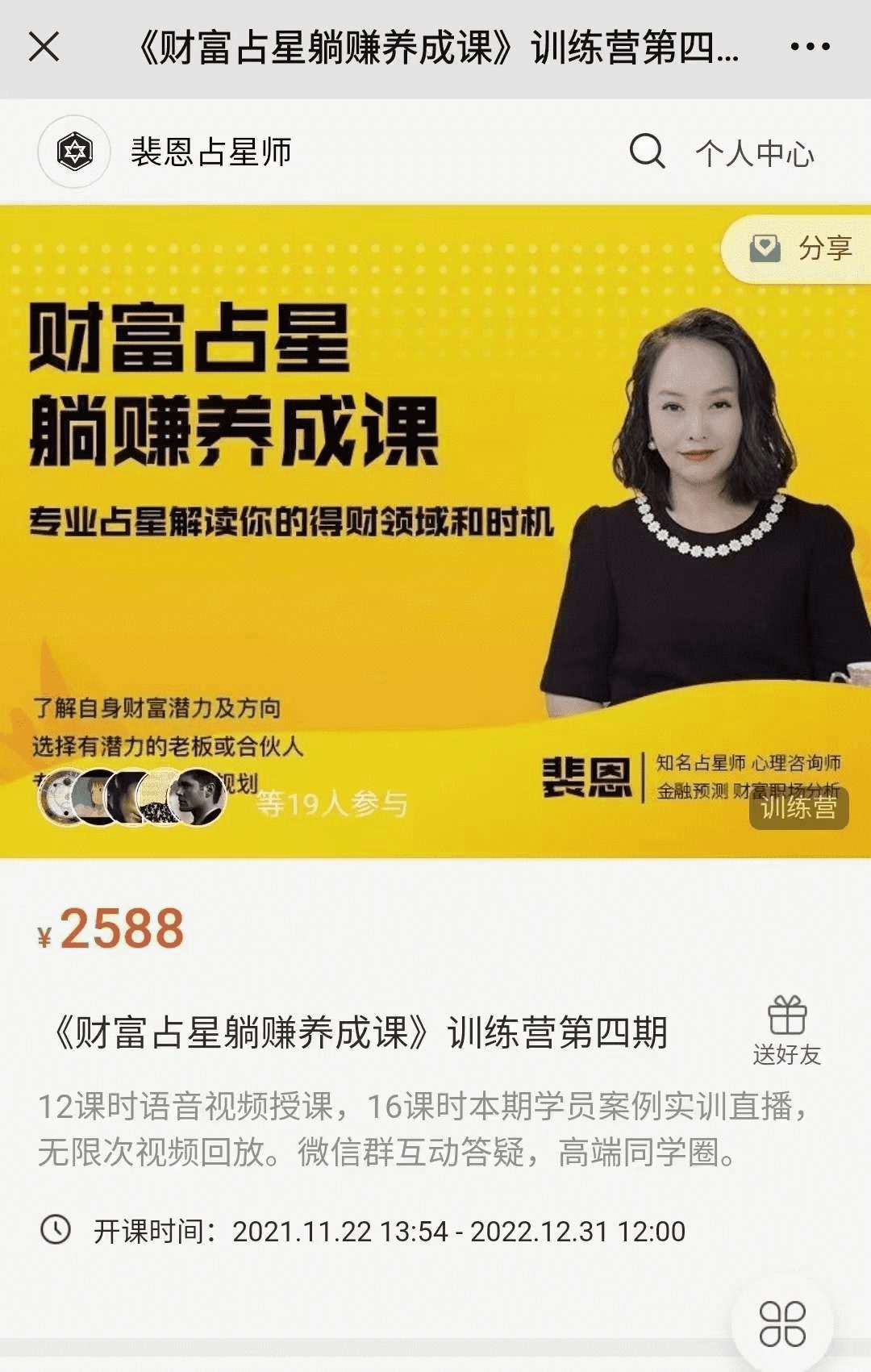 (财富占星)恩裴老师最课新程 财富星占躺赚养成,课高清视频课程