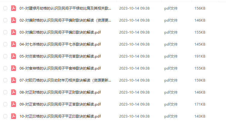 民间子平歌诀资料,每个资料10页左右.
