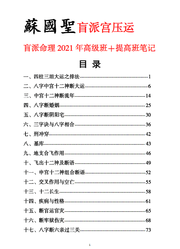 苏国圣-盲派宫压运《盲派命理2021年高级班+提高班笔记》82页高清电子档